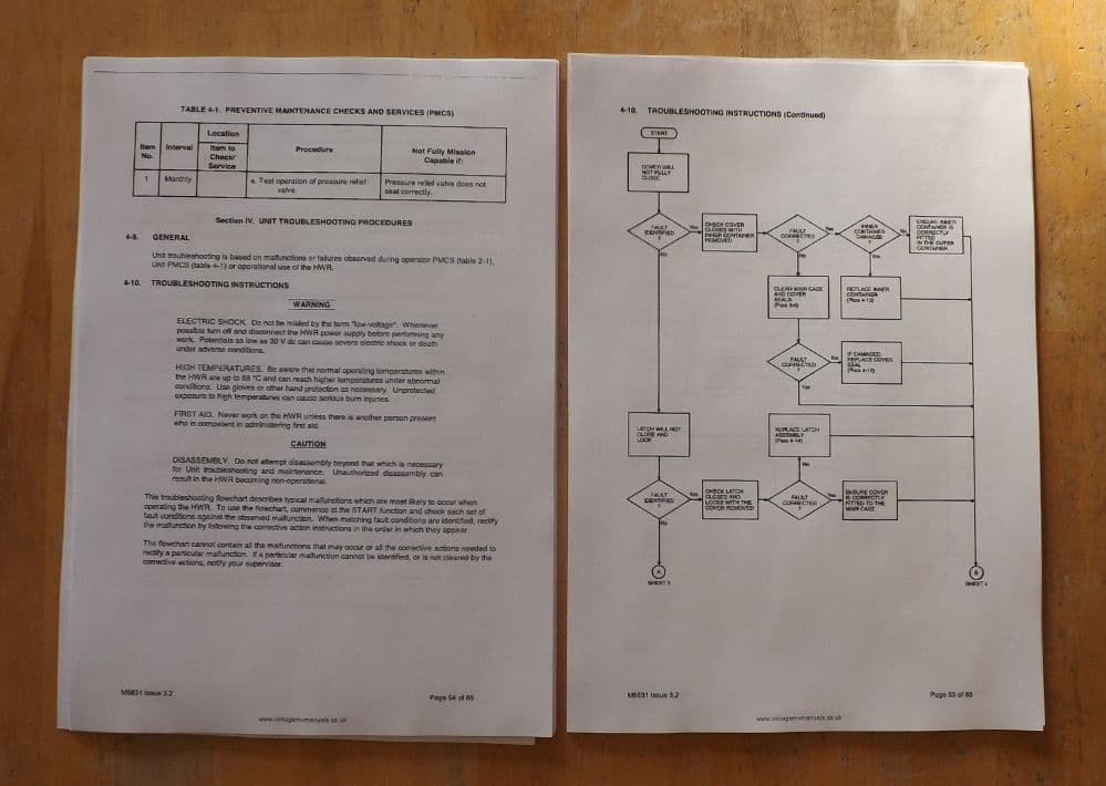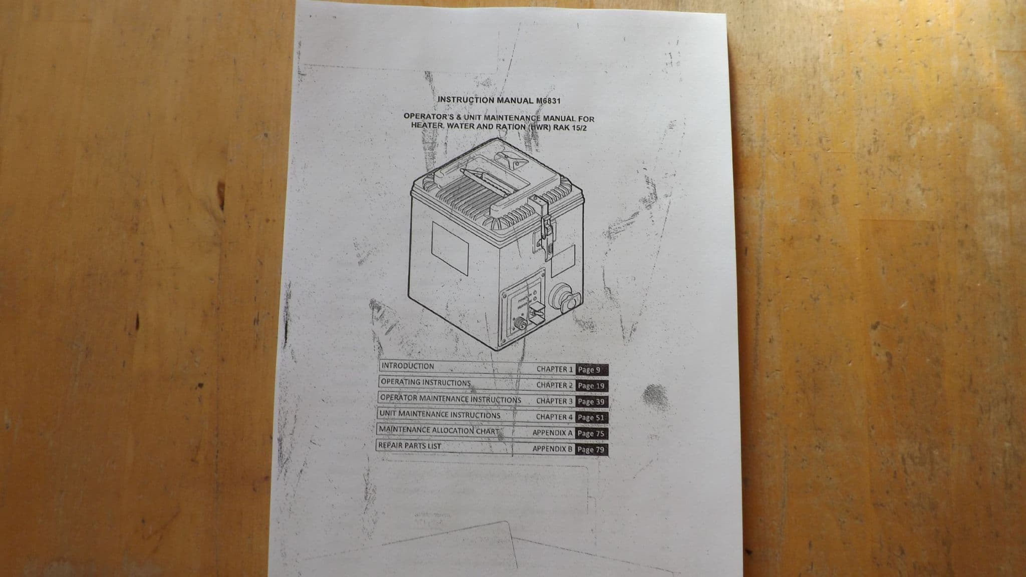 Operator's and unit maintenance manuals for Heater, Water and Ration (HWR) RAK 15/2.