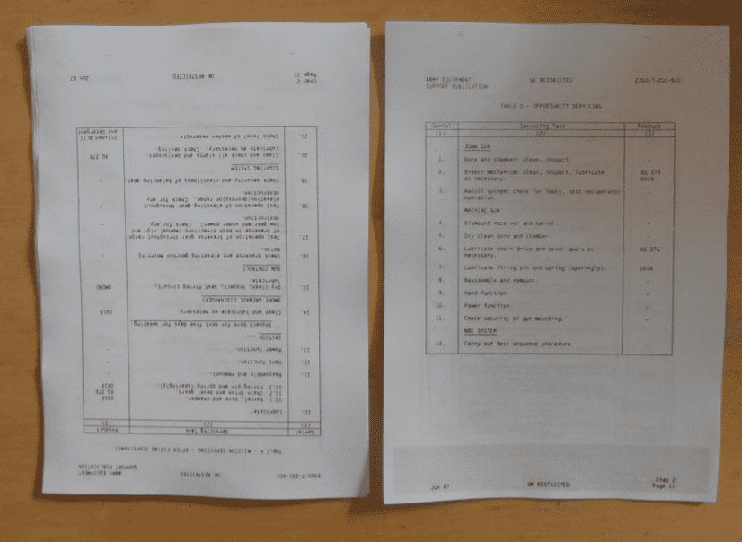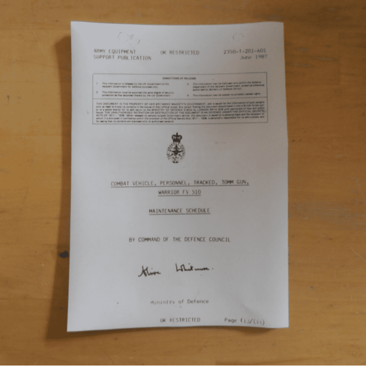 Warrior. FV510. Maintenance schedule.